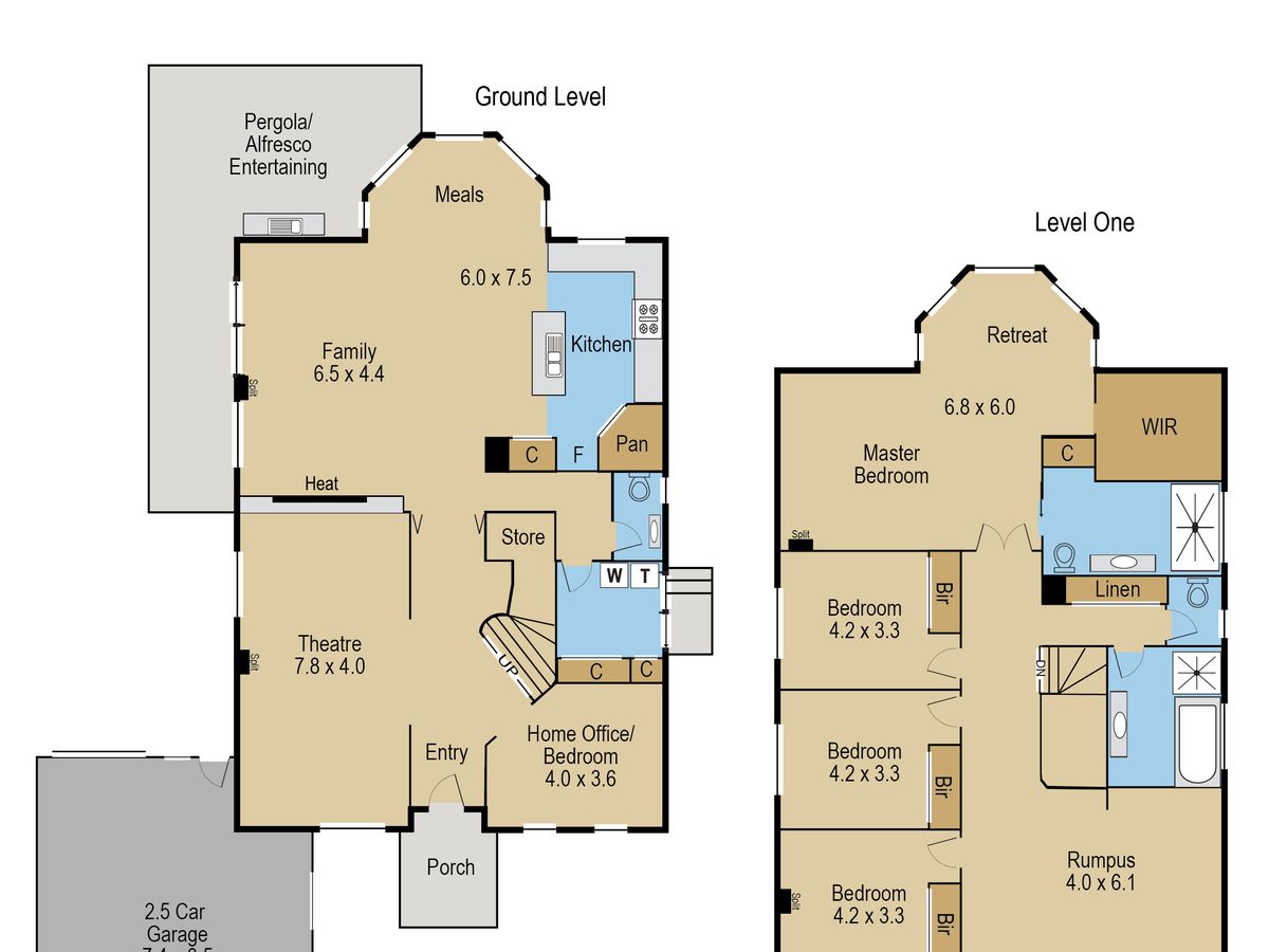 Upstairs, the master suite awaits with its walk-in robe, luxurious stone-topped ensuite, and unbeatable vistas, flanked by three double bedrooms with built-ins and a spacious multipurpose rumpus for the kids. Downstairs, a versatile study doubles as a fifth bedroom, while the fully renovated main bathroom and separate powder room keep things seamless. Relax in the converted theatre room featuring a 130" projector screen, 8-speaker surround sound, and six leather recliners for blockbuster movies or sports nights. With 9ft ceilings amplifying the airy feel, ducted heating, split system cooling throughout, in-house vacuum maid, full alarm, and surveillance cameras, every detail whispers security and ease.